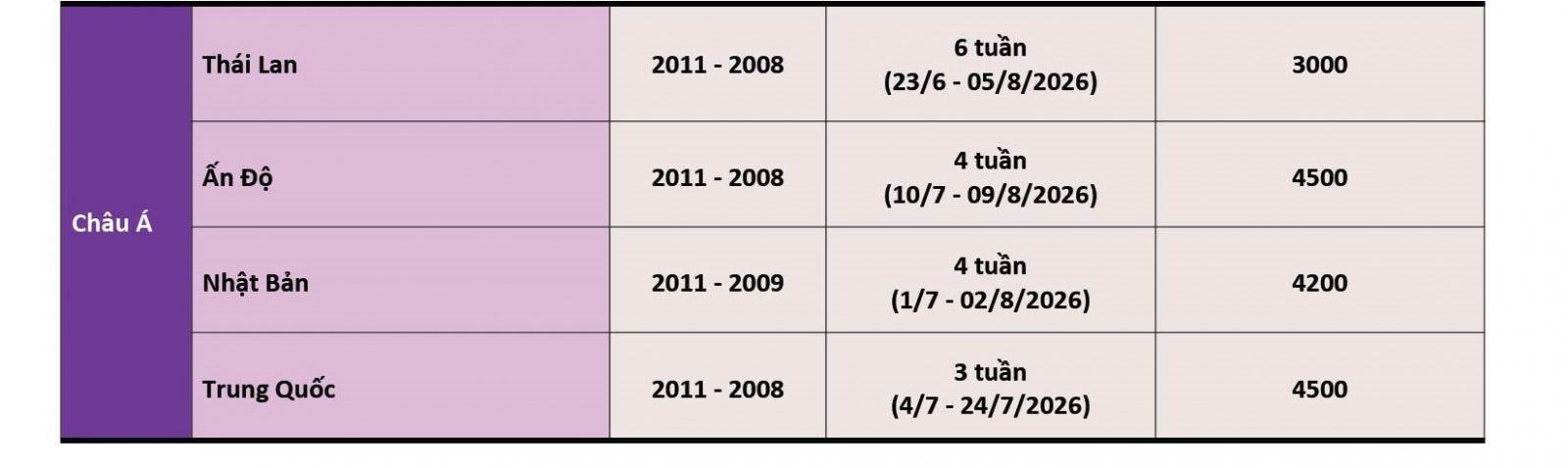 - Trao đổi văn hóa, trải nghiệm, khám phá du lịch, hoạt động tình nguyện