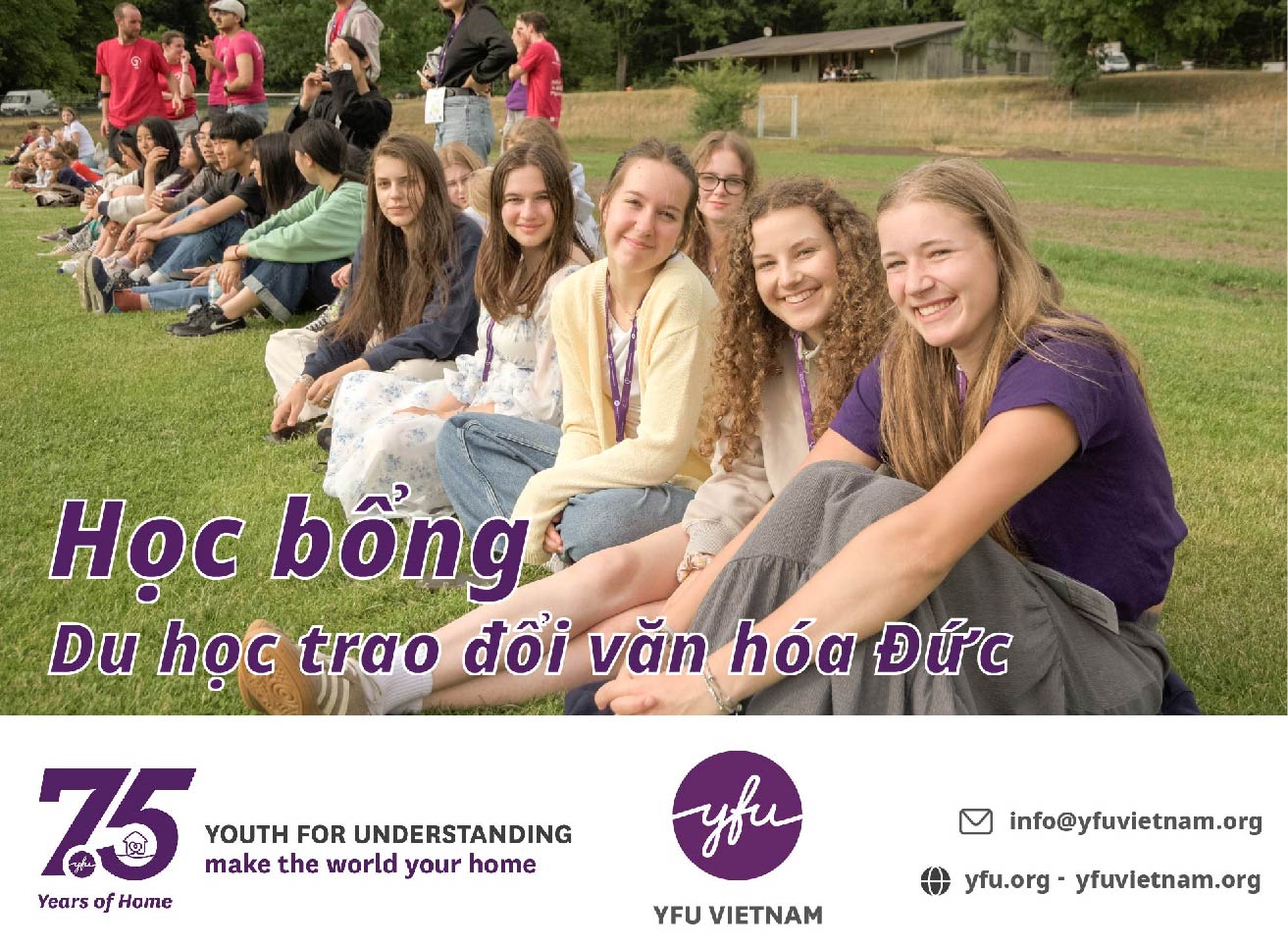 Nhân dịp kỷ niệm 75 năm thành lập, Tổ chức giáo dục phi lợi nhuận Youth For Understanding (YFU Đức và YFU Vietnam) trao tặng các suất học bổng đặc biệt trị giá 10% - 20% dành cho 03 ứng viên xuất sắc đã có chứng chỉ tiếng Đức của Viện Goethe trình độ A2 trở lên, cụ thể: