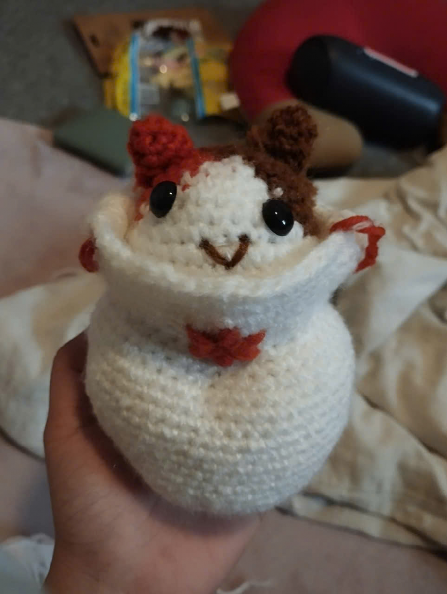 The crocheted cat gift is completed
